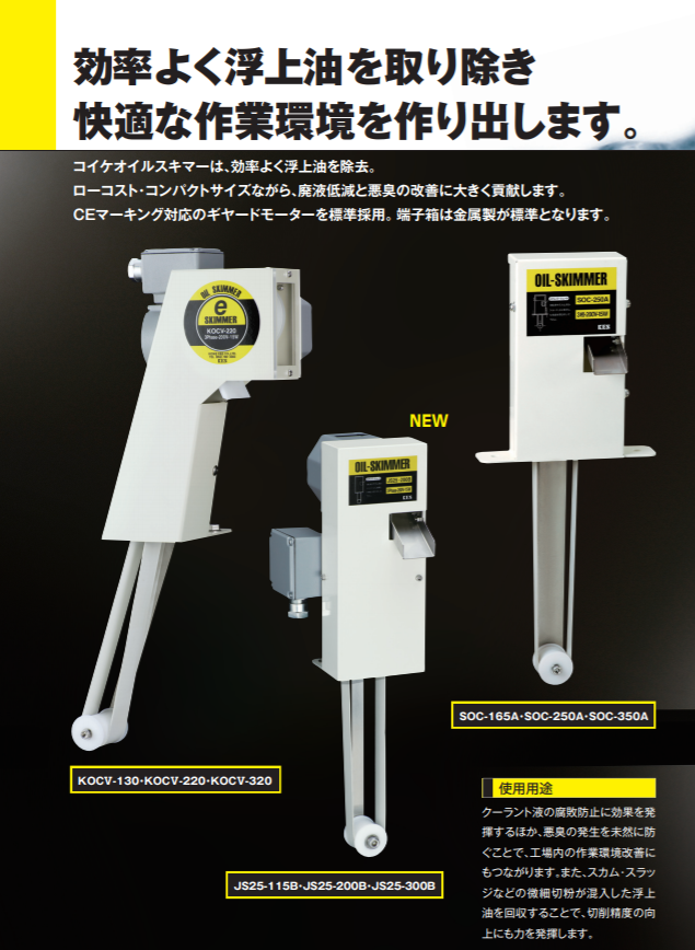 小池撇油器可有效去除机床冷却液中的浮油,浮渣,油泥等,以防止产生腐臭味。紧凑型撇油器的标准类型。设备制造商都将其用作选件。