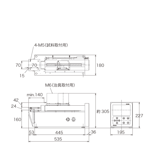 安全设备任意设定上下限开关,过载自动停止外形尺寸* 3宽535 x深180 x高305毫米(图纸显示